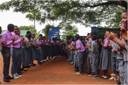 On Monday, we arrived at the front gates of Jacaranda greeted by students holding a chitenge (an African piece of fabric) for each of us. A girl wrapped it around my waist as a skirt and once we were all ready, we filed into the gates to be welcomed in the most heartfelt way I had ever experienced. All the students were lined up on each side, creating a path for us to follow as the sounds of singing, clapping, and drumming filled the air, infusing the atmosphere with energy and anticipation. There was a sense of camaraderie and unity that followed as we walked the path, and this feeling lasted the rest of the trip and is what is meant by the "Magic of Jacaranda."