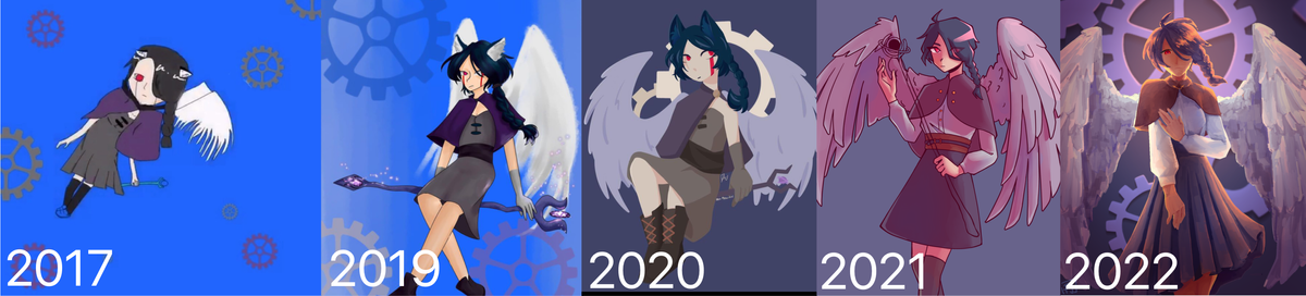 It would be a good idea to redraw this every year to show my improvement after the second one was made. Each year shows an important change in my style, an improvement in anatomy and colour, with the only exception being an almost, but still unfinished piece in 2021. One of the most drastic and important changes in my style was observed in the change from 2019 to 2020 when COVID hit the world and drawing became one of my only pastimes. My style became more simplistic, with a larger focus on how I use colour theory in my drawings. This change in thinking influenced the way I approach drawing from then on.